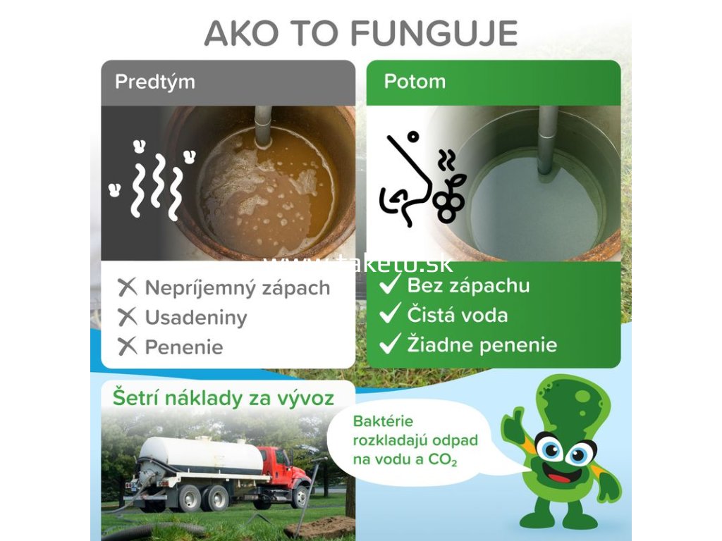 - Zlepšuje výkon domácej ČOV