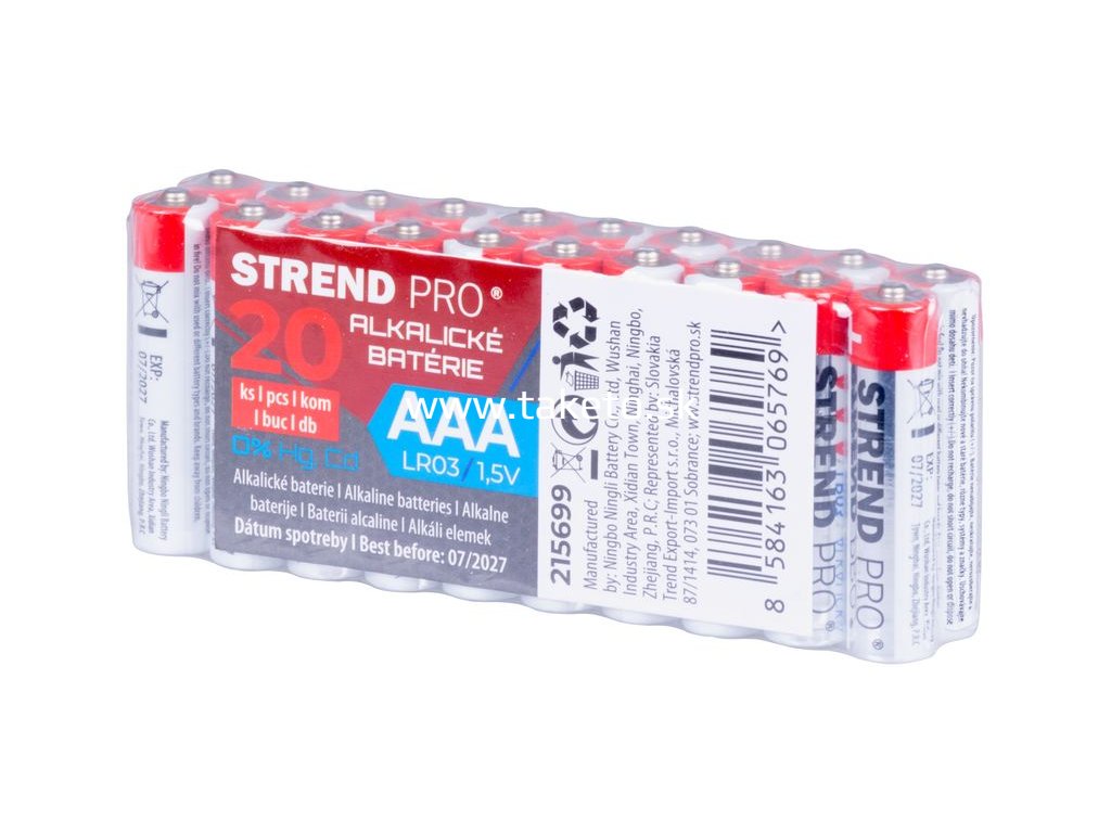 20-kusový multipack alkalických batérií Strend Pro s označením AAA. Vyznačujú sa vysokou kapacitou. Neobsahujú ortuť ani kadmium. Univerzálne použitie do všetkých zariadení na batérie typu AAA ako napríklad hračky, svietidlá, dekorácie a mnoho ďalších.