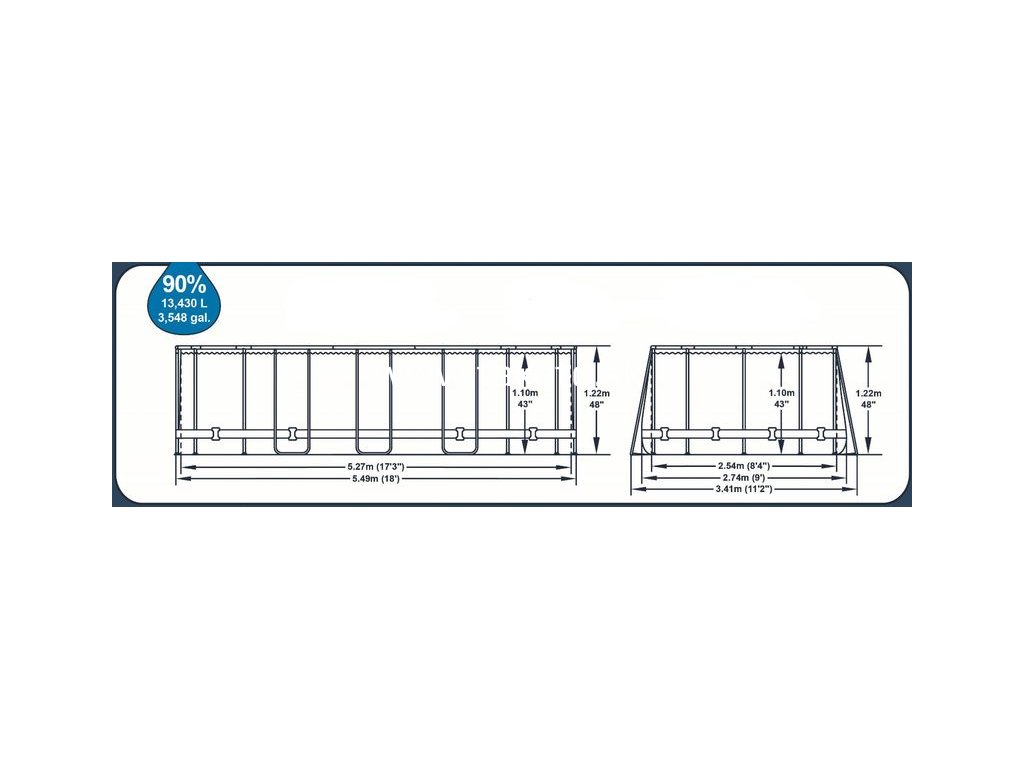 - Mimoriadne pevné bočné steny tohto bazéna sú konštruované z materiálu DuraPlus ™, čo je 3-vrstvový vystužený materiál s polyesterovou mriežkou uloženou medzi dvoma vrstvami vysoko odolného PVC. Celková hrúbka steny je 0,40 až 0,80 mm v závislosti na veľkosti bazénu