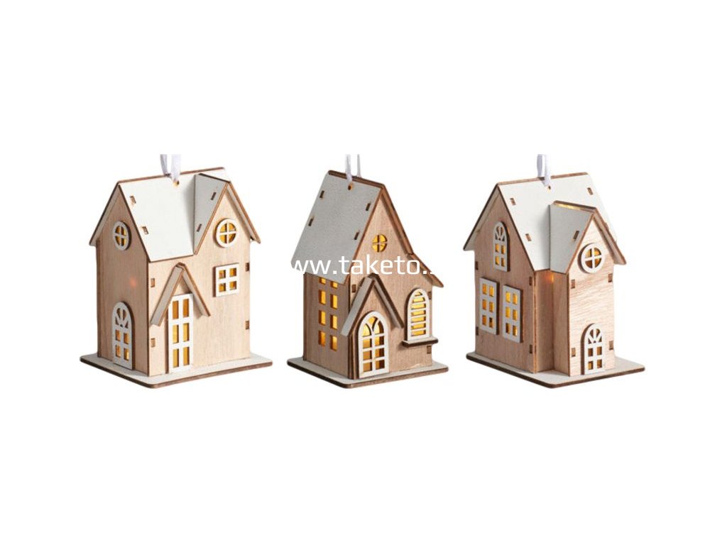 Dekorácia Domček, 3xLED, mix vzorov, 1x CR2032, Sellbox 12ks + praktický pomocník k objednávke