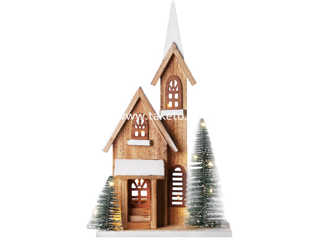 Dekorácia Kostol s LED osvetlením spája tradíciu, remeselnú kvalitu a modernú technológiu. Vyrobený z kvalitného čínskeho jedľovca, vydrží dlhé roky a svojím teplým svetlom spríjemní každý sviatočný večer.