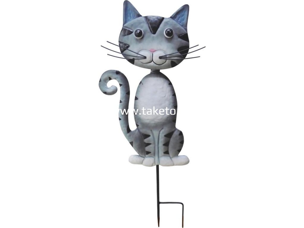Dekorácia MagicHome Mecco, Mačka, plech, sivá, zapichovacia, 25,5x3,5x61 cm + praktický pomocník k objednávke