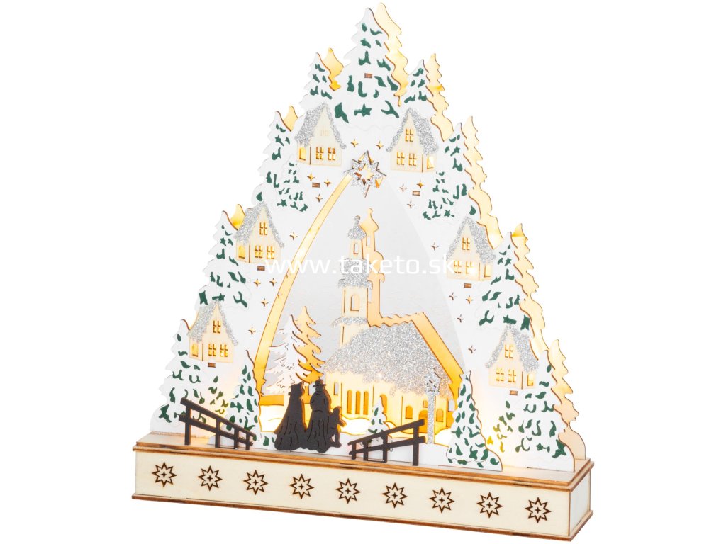 Dekorácia MagicHome Vianoce, Dedinka s kostolom, LED, MDF, 30x7x33,5 cm + praktický pomocník k objednávke