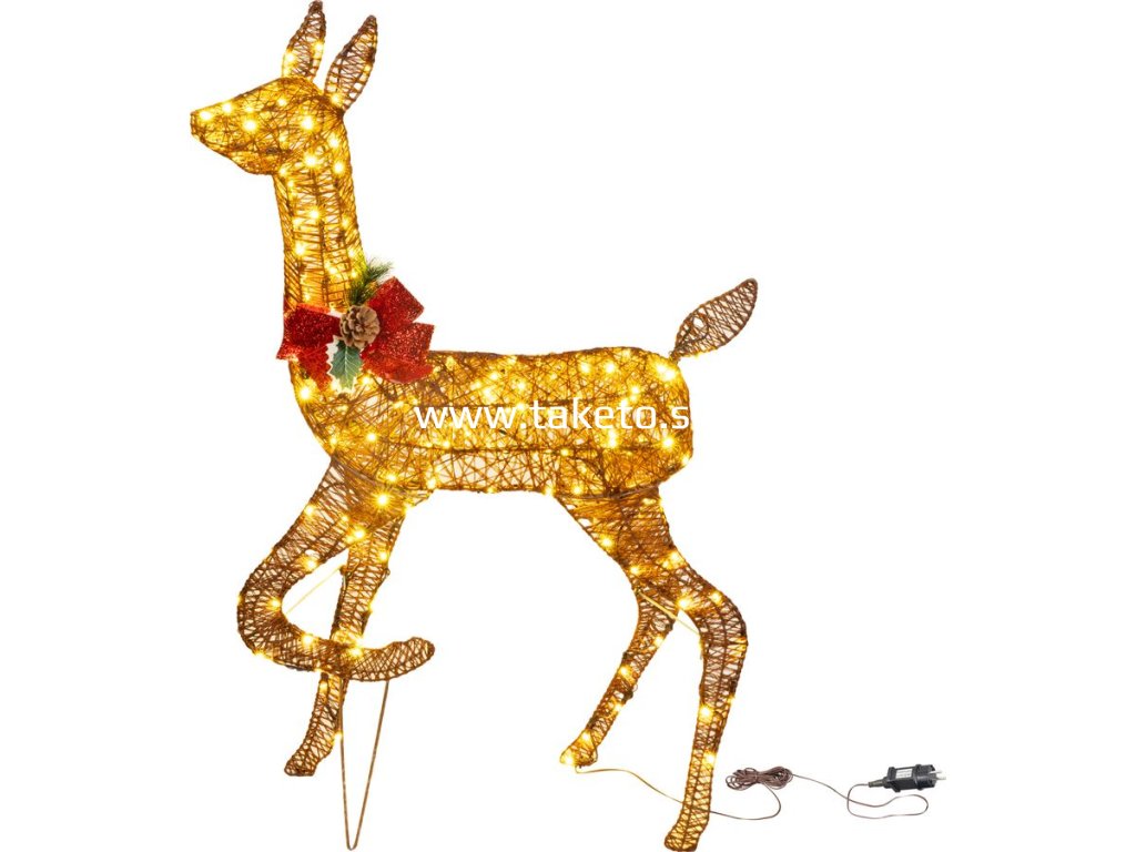 Dekorácia je vyrobená z kvalitného kovu a osvetlená 200 LED žiarovkami v teplej bielej farbe, ktoré vytvárajú príjemnú a útulnú atmosféru počas zimných večerov. Vďaka výške 0,9 m sa jeleň stane neprehliadnuteľnou dominantou vašich vianočných dekorácií.