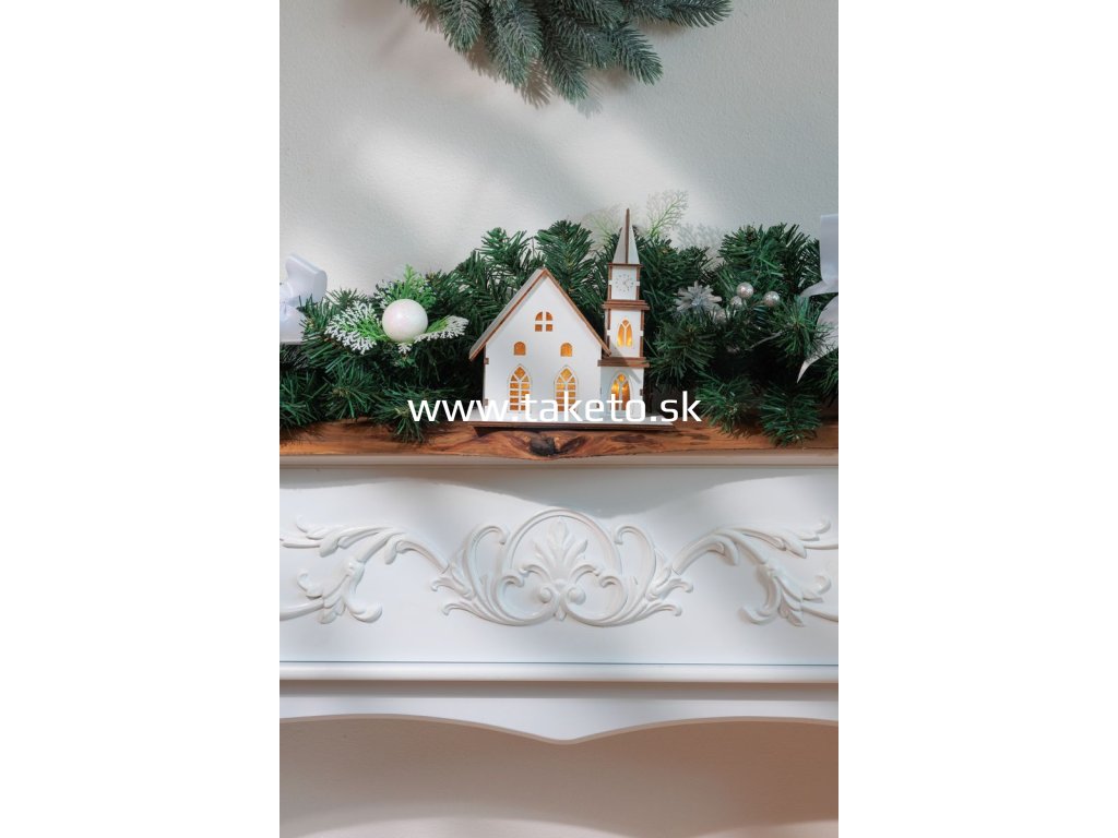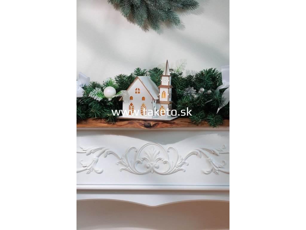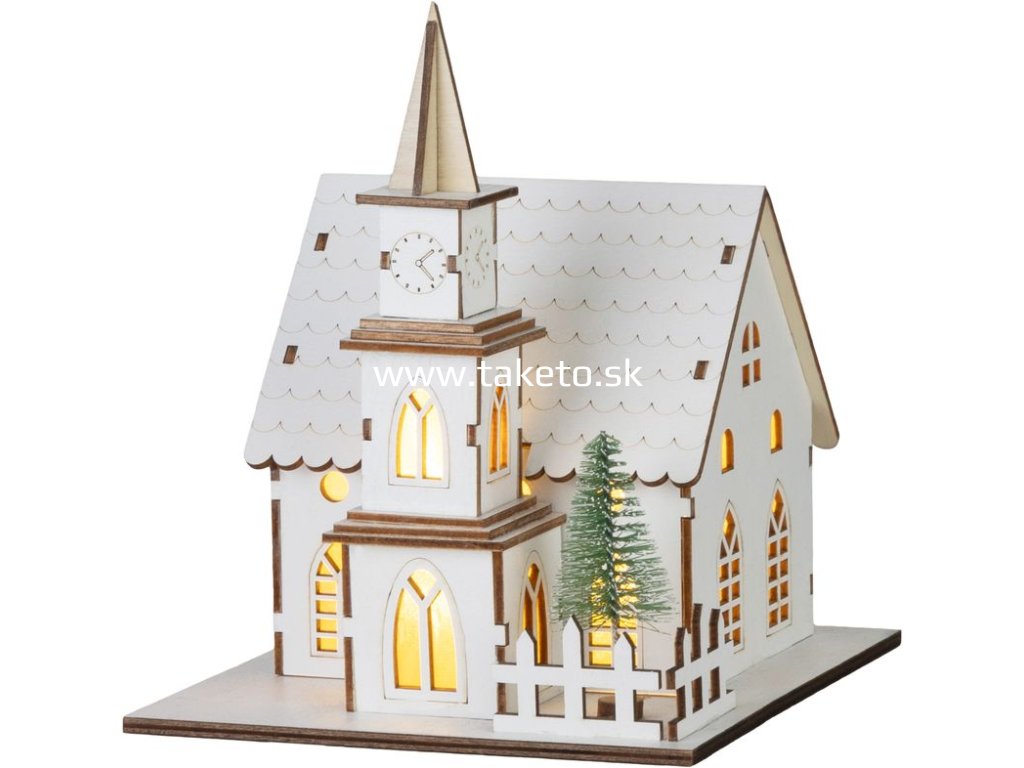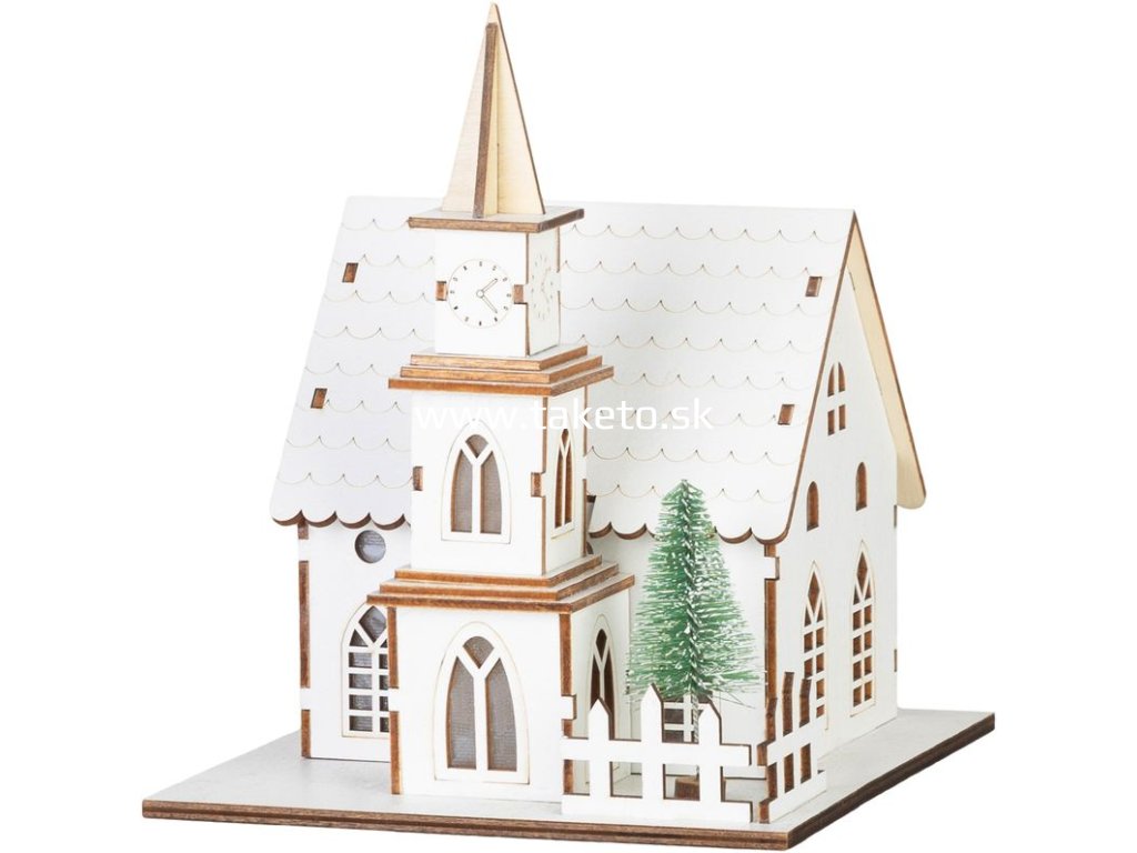 Dekorácia MagicHome Vianoce, kostol, drevo, 6xLED teplá biela, 15x17x18.5 cm, 2xAAA + praktický pomocník k objednávke
