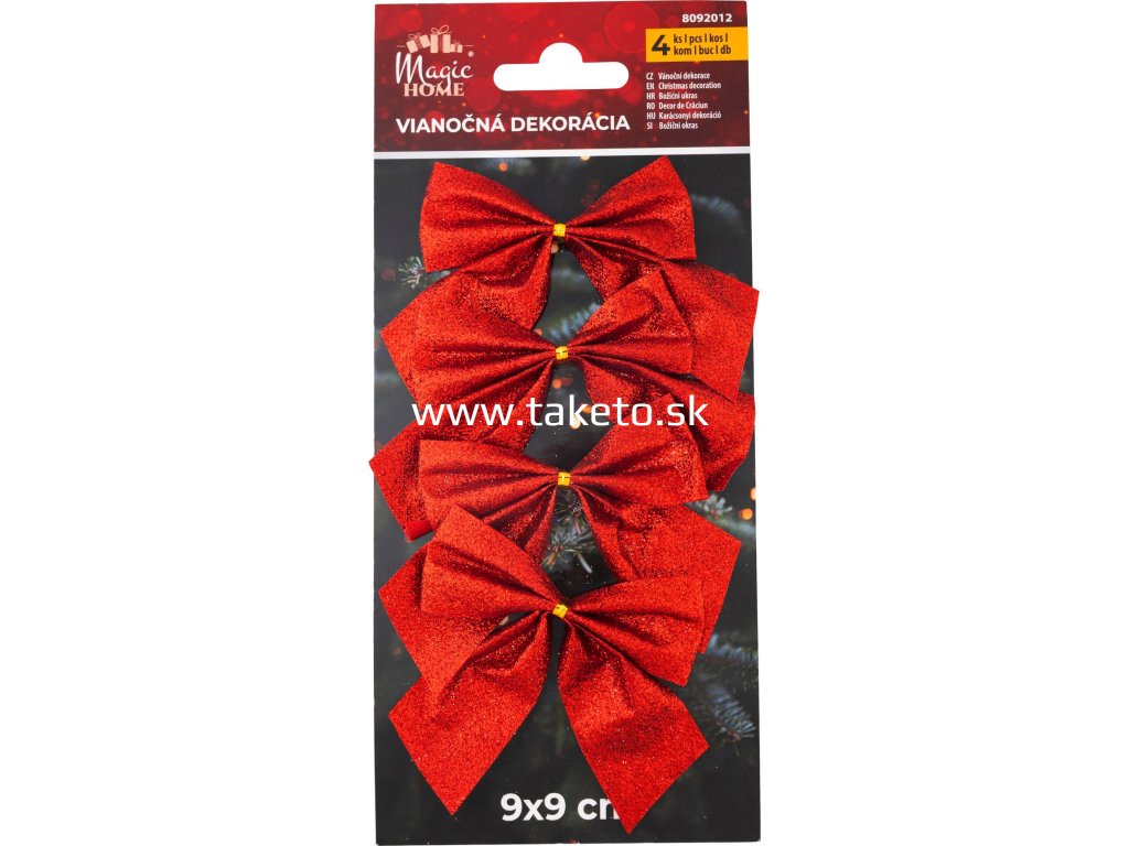 Dekorácia MagicHome Vianoce, mašla, červená, bal. 4 ks, 9 x 9 cm + praktický pomocník k objednávke