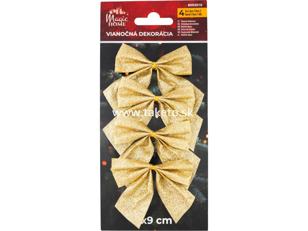 Dekorácia MagicHome Vianoce, mašla, zlatá, bal. 4 ks, 9 x 9 cm + praktický pomocník k objednávke