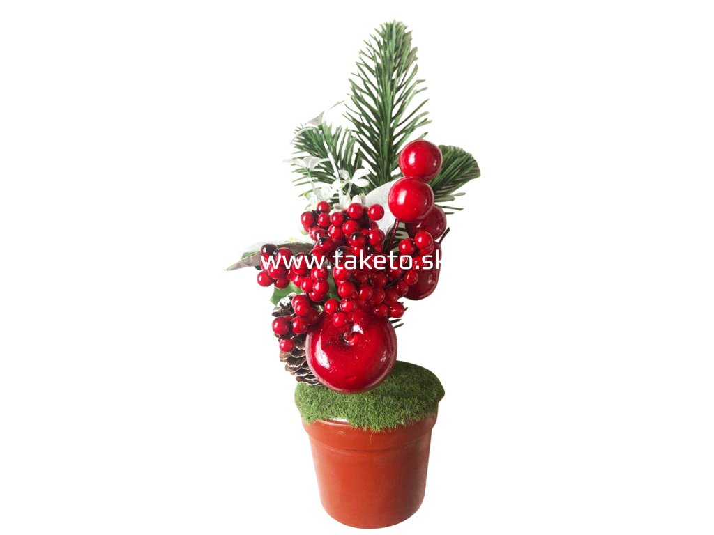 Dekorácia MagicHome Vianoce, Vetvičky v črepníku, s jablkom, 25cm, 2ks + praktický pomocník k objednávke