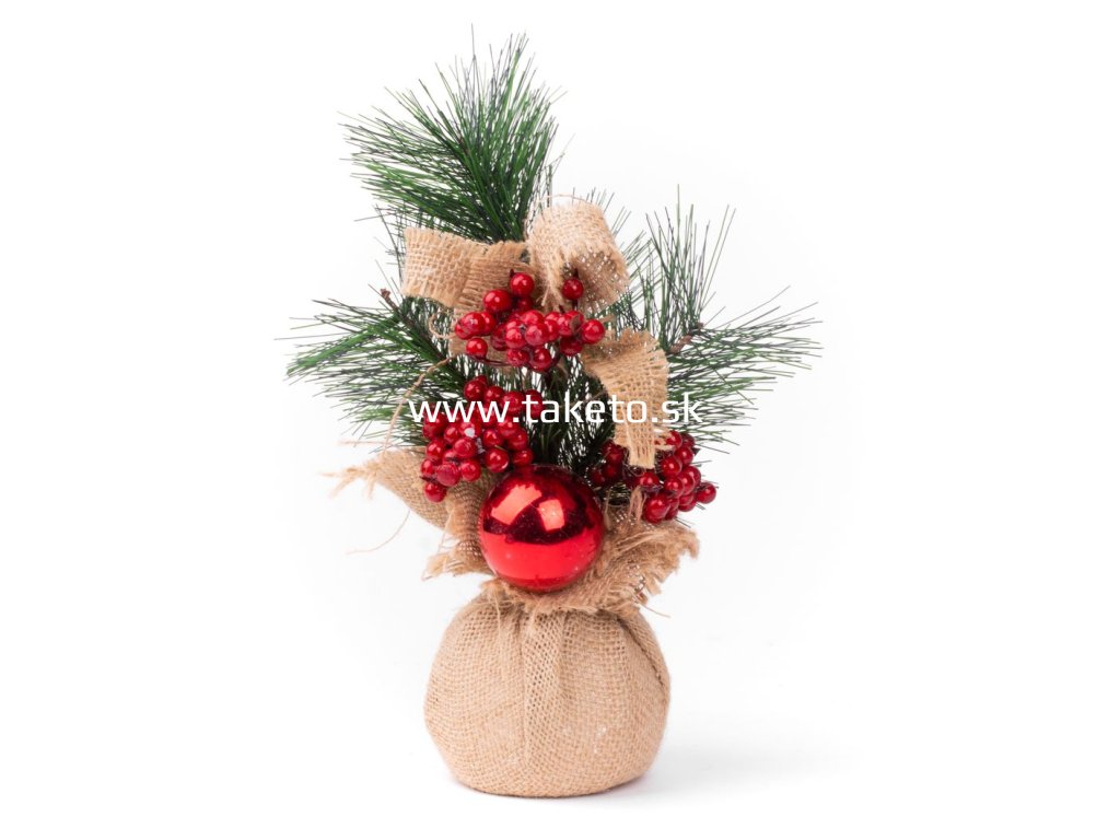 Dekorácia MagicHome Vianoce, Vetvičky v jute, s guľou, 23 cm, 2ks + praktický pomocník k objednávke