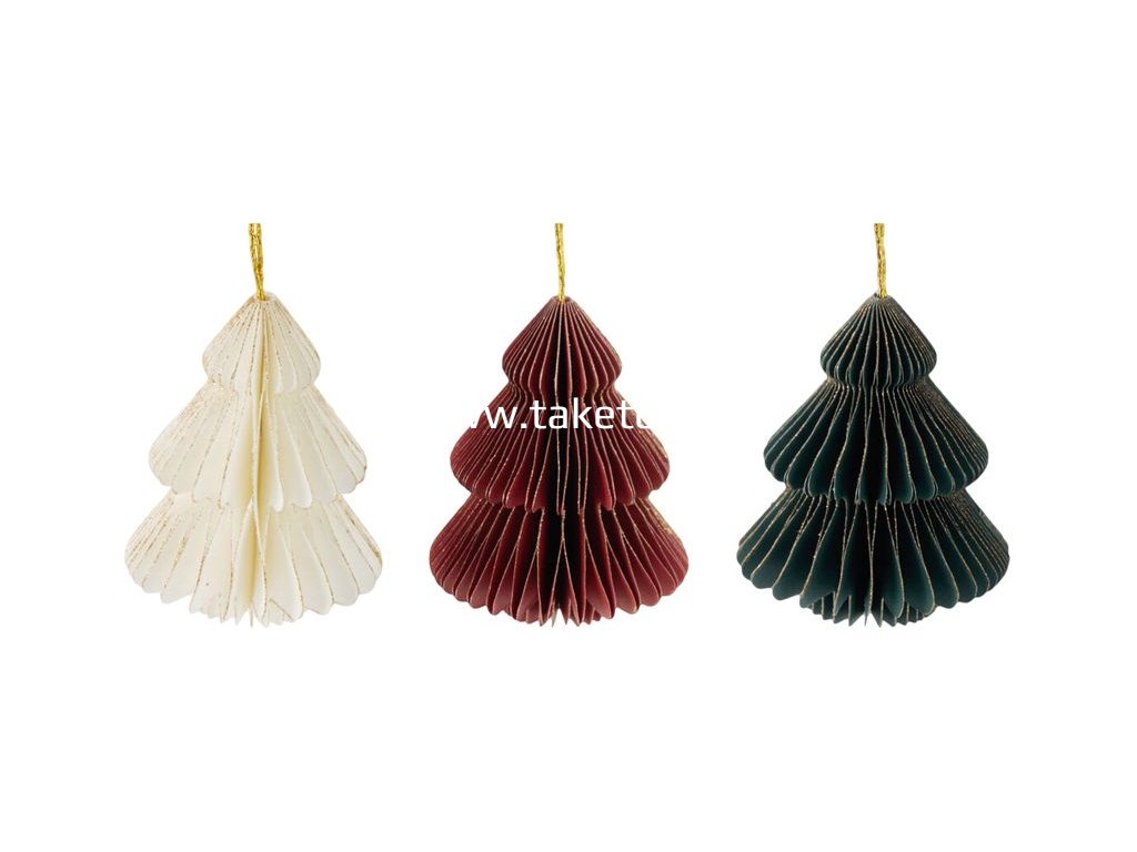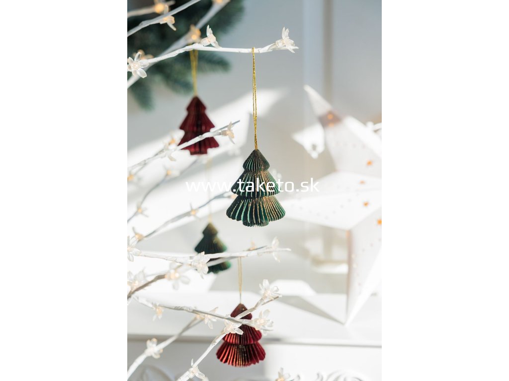 Vytvorte si jedinečnú vianočnú atmosféru s elegantnými papierovými dekoráciami v tvare stromčeka. Tieto ľahké a štýlové ozdoby sú vyrobené z kvalitného ručného papiera a vynikajú svojou originálnou skladacou štruktúrou, ktorá vytvára 3D efekt.