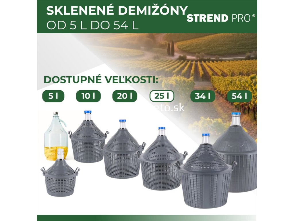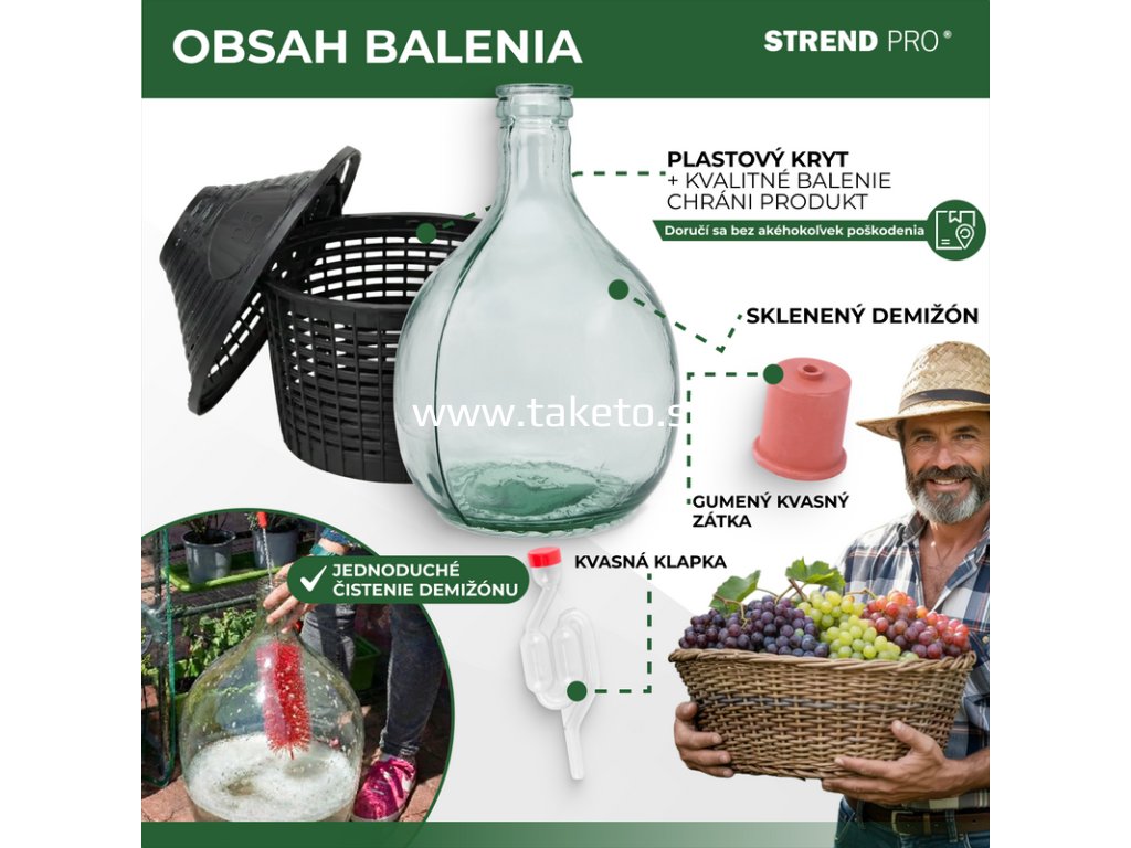 Demižón Strend Pro Cada Inco, 25 lit. sklenený, demižón na víno a pálenku, plastový kryt + praktický pomocník k objednávke