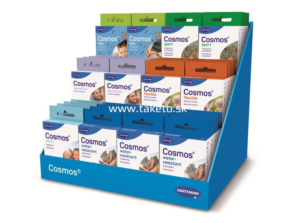 Balenie obsahuje mix 12 druhov náplastí, pričom každý druh je zastúpený po 6 kusoch. Celkový počet náplastí v displeji je 72 kusov. Náplasti Cosmos sú známe svojou kvalitou, priedušnosťou a spoľahlivou priľnavosťou.