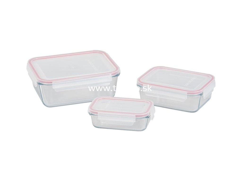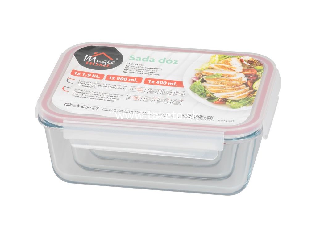Dóza MagicHome, sada 3 ks, sklenená, sklo, obdlžníková, s vekom, 400/900/1900 ml + praktický pomocník k objednávke