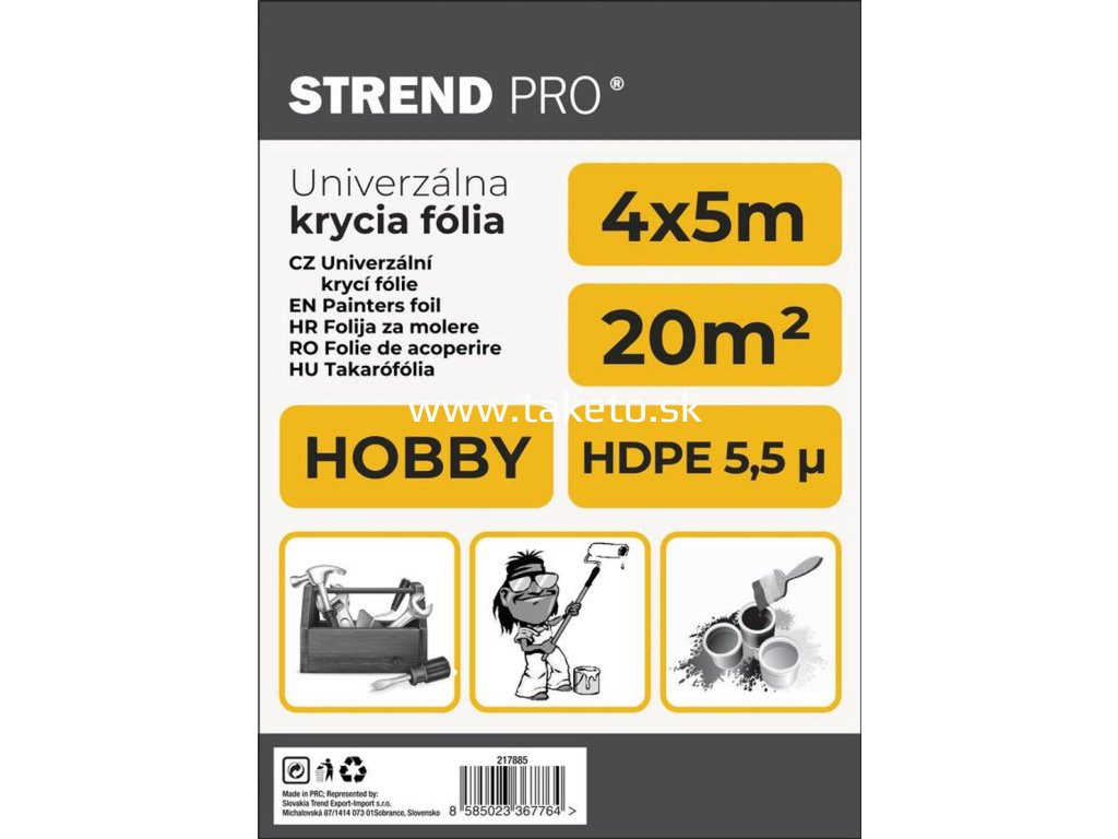 Fólia krycia Strend Pro Hobby, maliarska, 4x5 m, 6µ, zakrývacia + praktický pomocník k objednávke