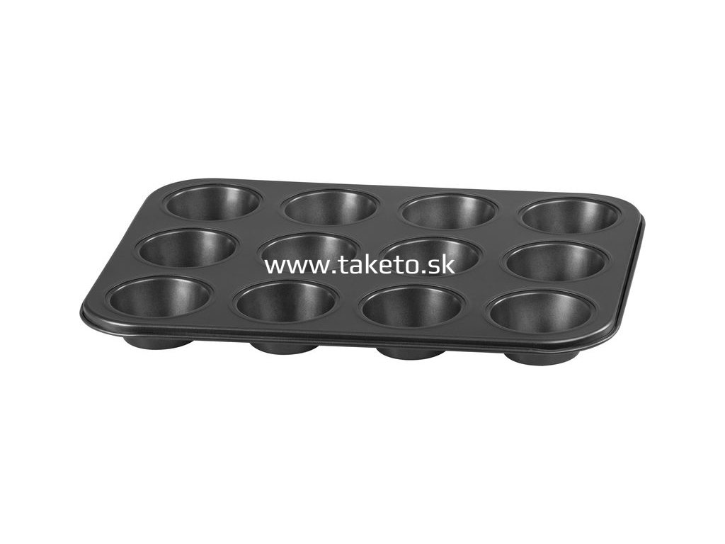 Napečte svojim blízkym chutné muffinky, s formou na pečenie MagicHome sa Vám to zaručene vydarí! Naraz upečiete až 12 muffinov. Nepriľnavý povrch napomáha proti prilepeniu cesta. Materiál: uhlíková oceľ. Vhodná na použitie v elektrickej, plynovej a teplovzdušnej rúre na pečenie do 230 °C. Rozmery: 35x26,5x3 cm.
