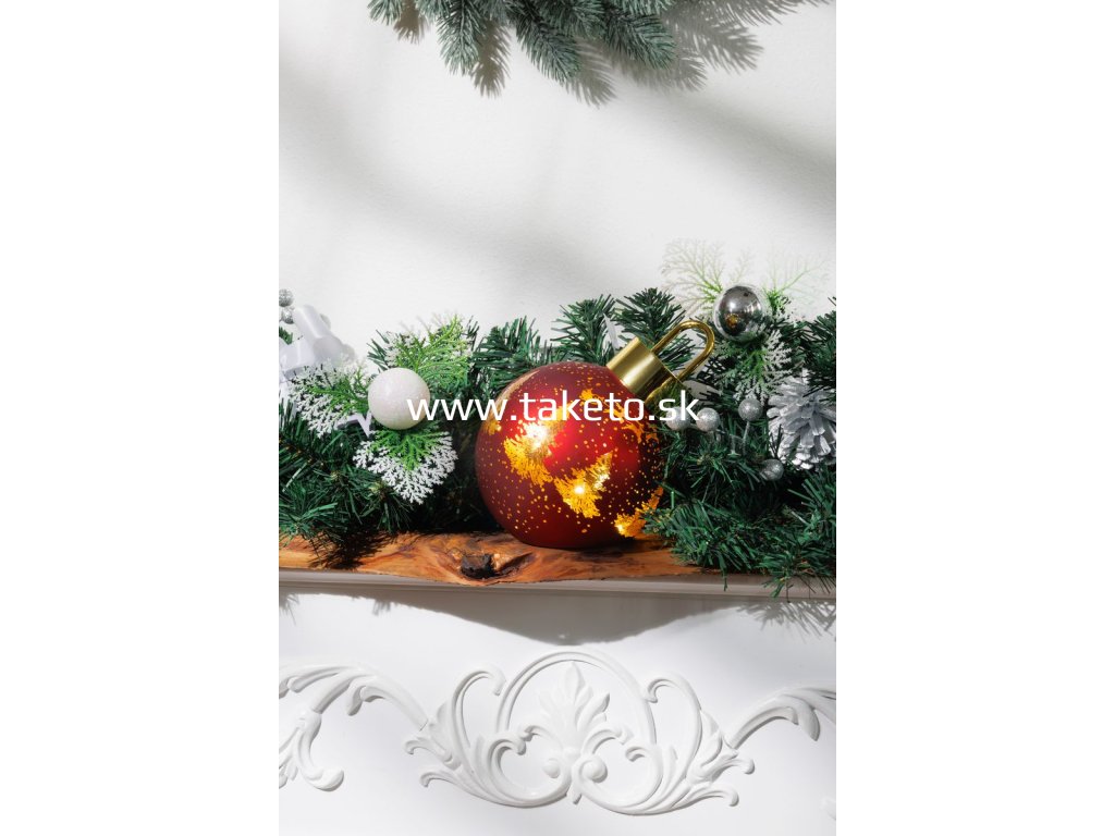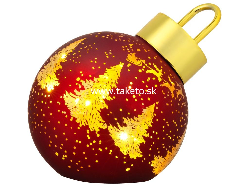 Guľa MagicHome Vianoce, sklo, červená, 10xLED teplá biela, 12x12x18 cm, 2xAA + praktický pomocník k objednávke