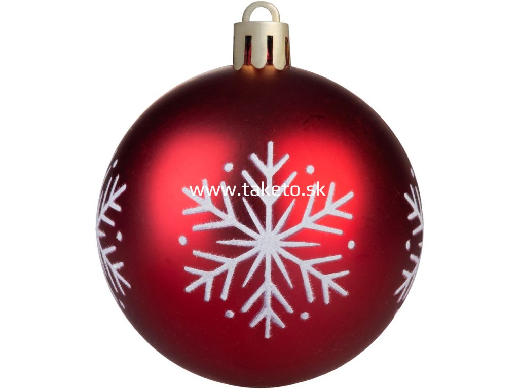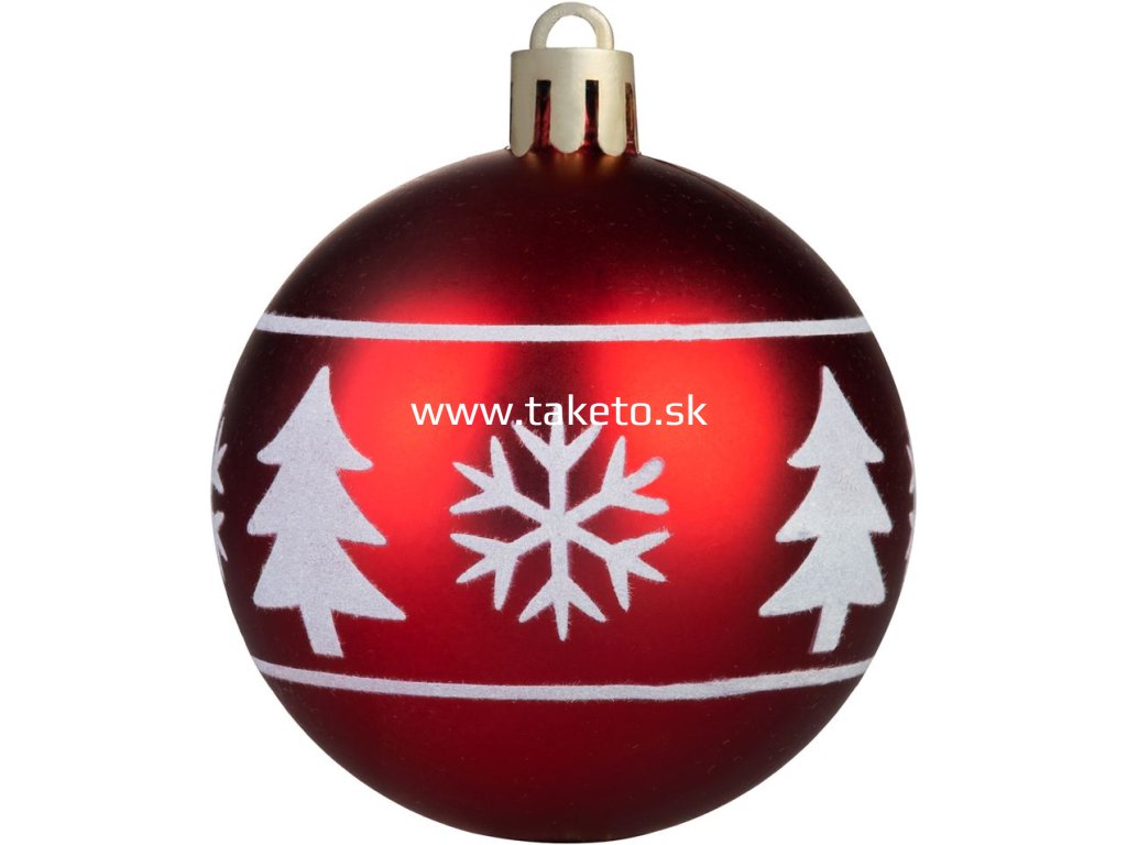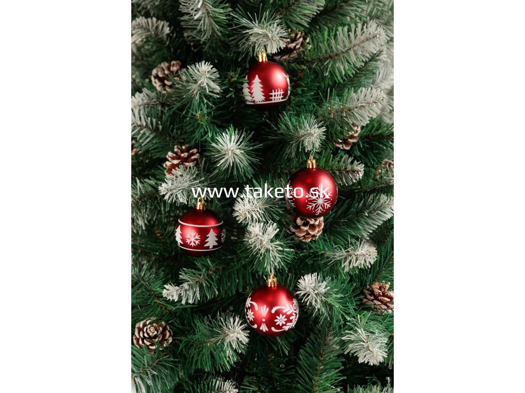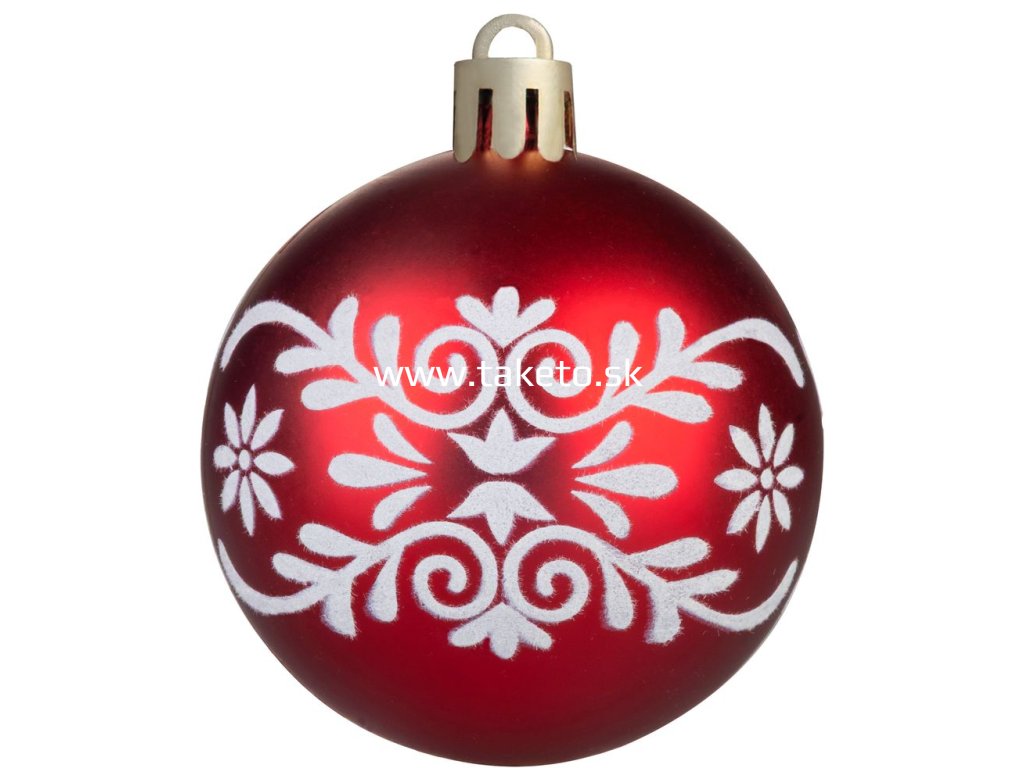 Súprava ozdôb na stromček slúži na slávnostné ozdobenie vianočného stromčeka. Pozostáva z 8 ks vianočných gulí s bielym ornamentom a s priemerom 6 cm. Farba gulí je červená. Sú vyrobené z plastu.Dodatočné parametre