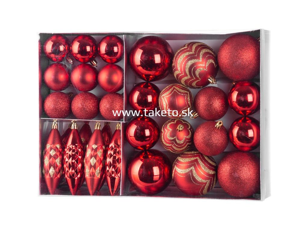 Súprava ozdôb na stromček slúži na slávnostné ozdobenie vianočného stromčeka. Pozostáva z 31 ks ozdôb s rozmermi 6x8 cm - 8x6 cm a 9x5 - 8x12 cm. Farba ozdôb je červená. Sú vyrobené z plastu.Dodatočné parametre