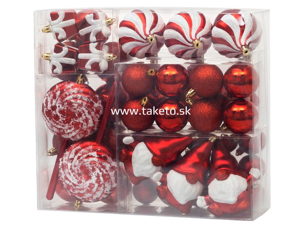 Gule MagicHome Vianoce, sada, 47 ks, červené, mix, na vianočný stromček + praktický pomocník k objednávke