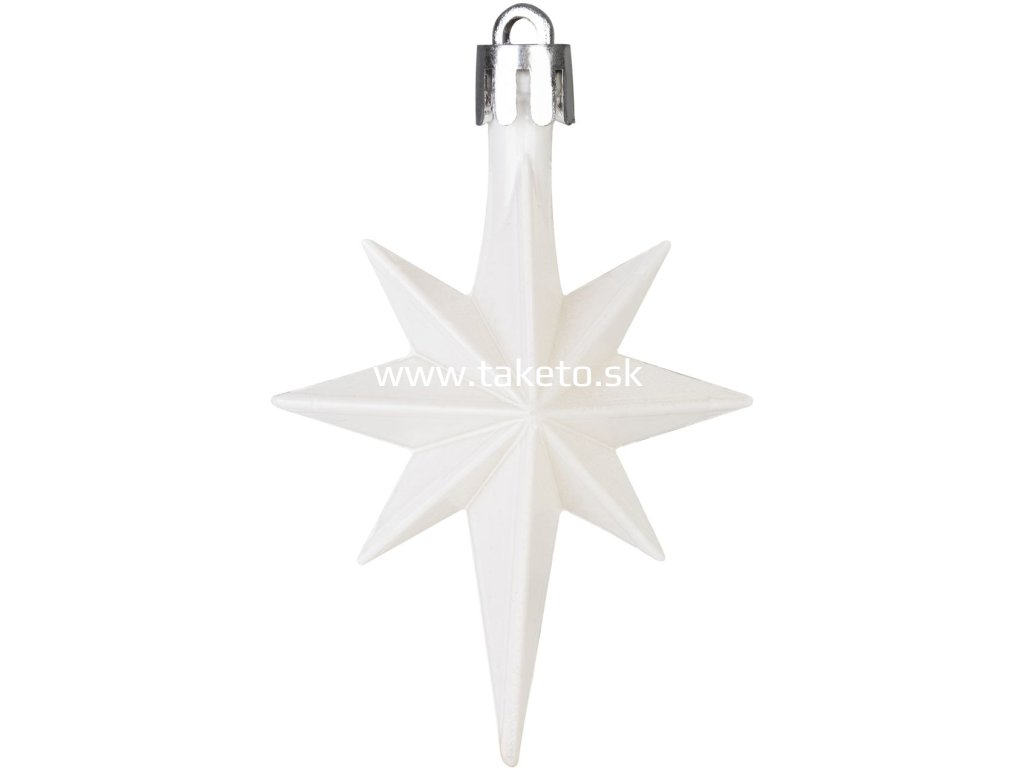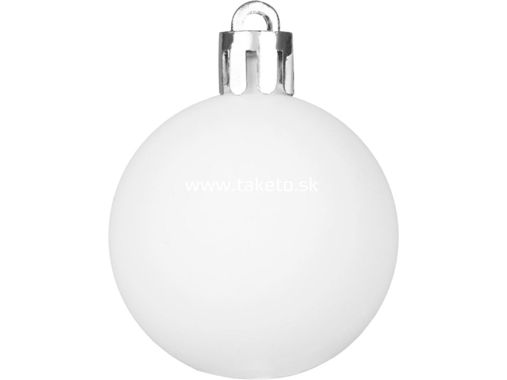 Súprava ozdôb na stromček slúži na slávnostné ozdobenie vianočného stromčeka. Pozostáva z 50 ks ozdôb (gule, hviezda, girlanda, šišky). Girlanda má rozmer 4 m a ostatné ozdoby majú rizmer 4 - 20 cm. Farba ozdôb je biela. Ozdoby sú vyrobené z plastu.Dodatočné parametre