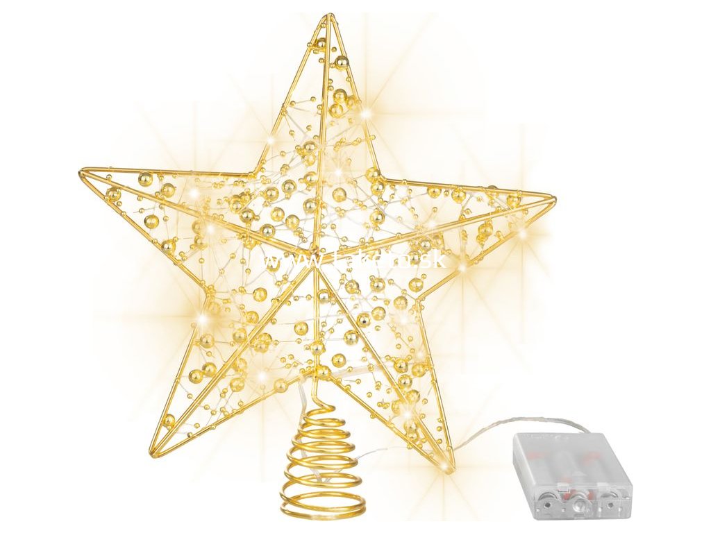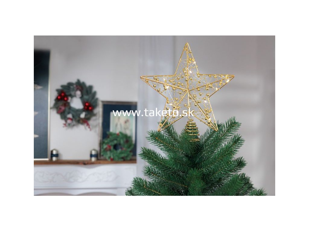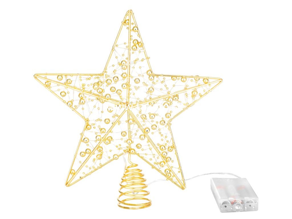 Dekoratívna vianočná hviezda MagicHome je krásnym doplnkom na vrchol vášho vianočného stromčeka. Vyrobená z odolného plastu so zlatým povrchom a jemným zdobením, vďaka čomu pôsobí elegantne a štýlovo. Svetelný efekt zabezpečuje 10 LED diód v teplej bielej farbe, ktoré vytvárajú príjemnú sviatočnú atmosféru.