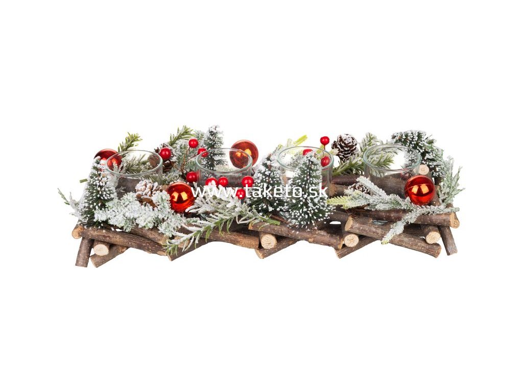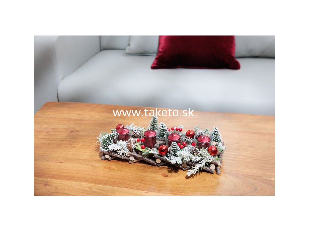 Ikebana MagicHome Vianoce, adventná, prírodná, so stromčekmi, 36x13x12 cm + praktický pomocník k objednávke