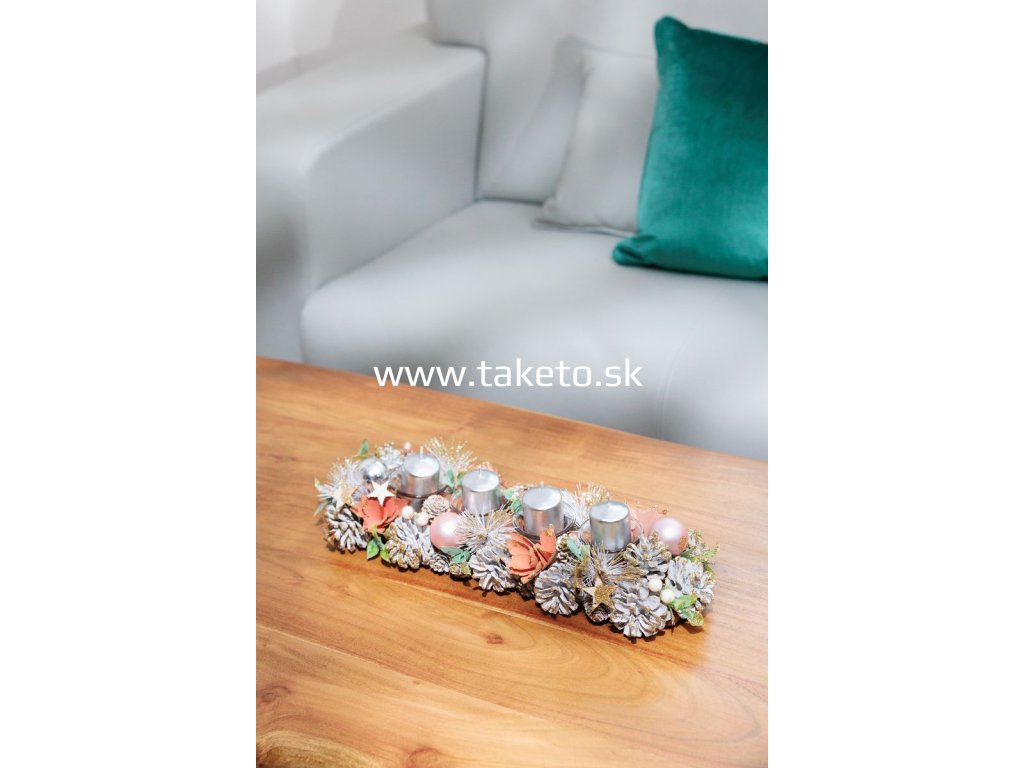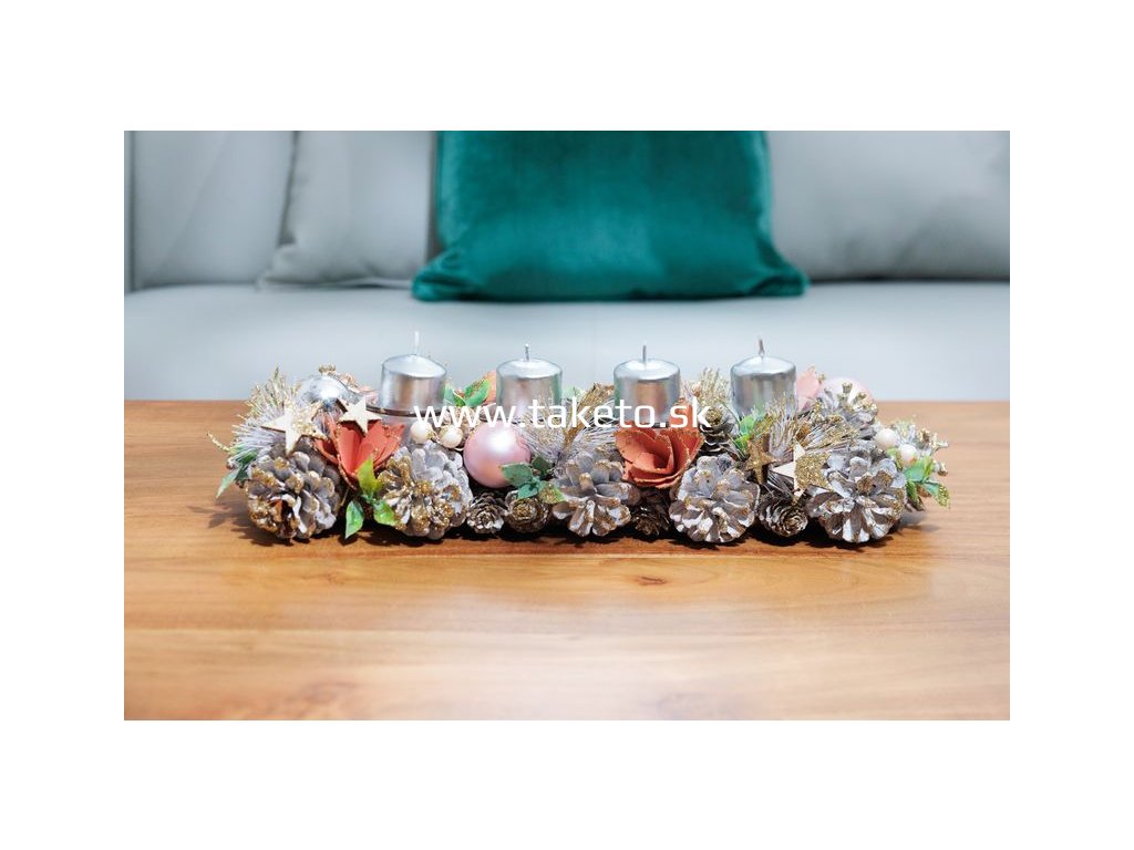 Ikebana MagicHome Vianoce, adventná, ružovo-oranžová, 44x15x9 cm + praktický pomocník k objednávke