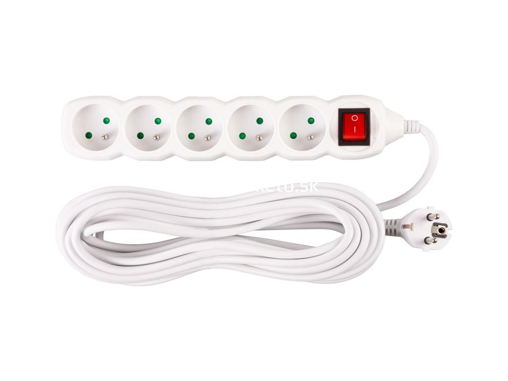 Praktický predlžovací kábel DG-F805BK v bielej farbe zabezpečí prívod elektrickej energie až do dĺžky 10 metrov. Svoje využitie nájde v kanceláriách, ale aj v domácnostiach. Vďaka 5 zásuvkám umožňuje pripojenie viacero zariadení naraz. Kábel disponuje praktickým ON/OFF prepínačom. Vypnutím hlavného vypínača prerušíte prívod elektrickej energie ku všetkým zapojeným spotrebičom.