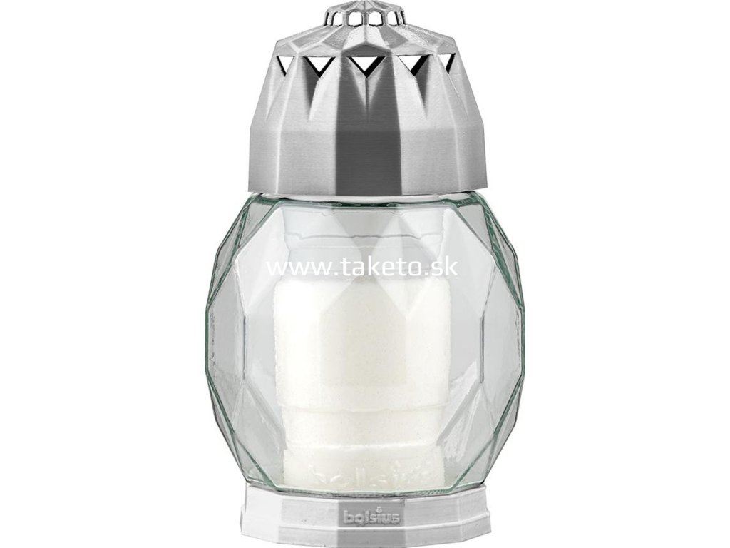 Kahanec Bolsius 2D Diamond Trasp, strieborný, na hrob, s náplňou 24 h + praktický pomocník k objednávke