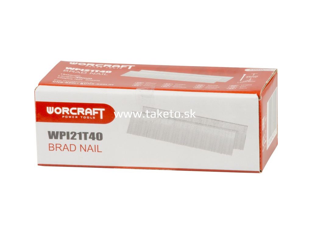 Klince do sponkovačky Worcraft CNS-S20LiH, 40 mm, Typ T, bal. 5000 ks + praktický pomocník k objednávke