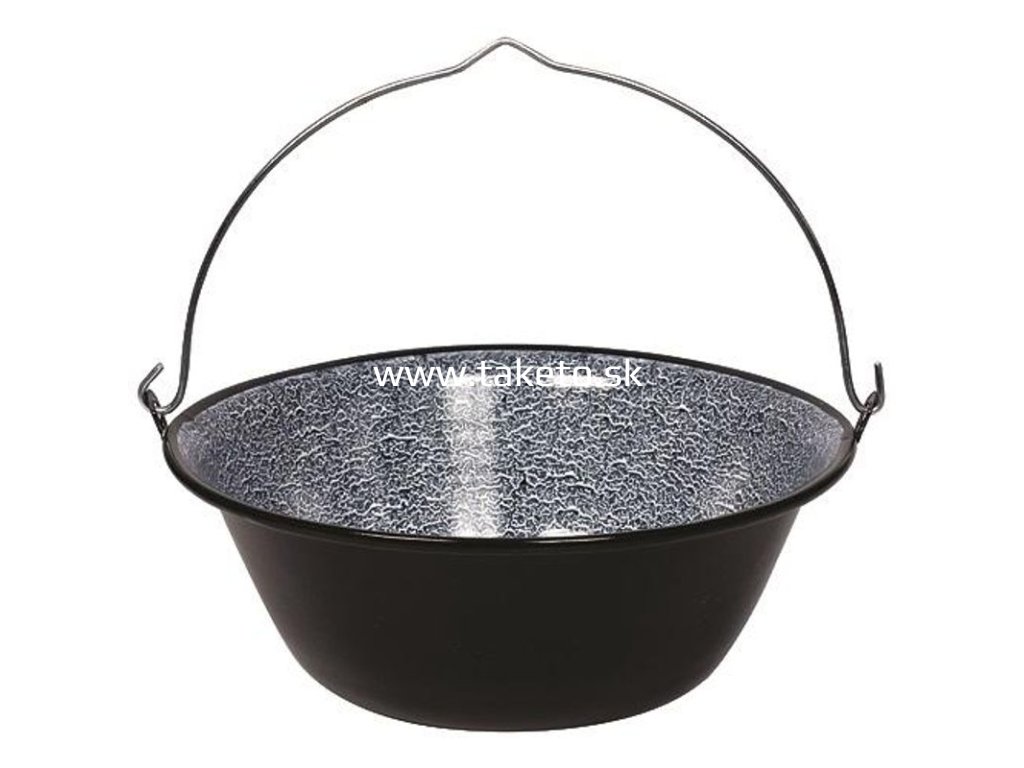 Kovový kotlík 8 lit, smaltovaný na guľáš s pozinkovaným kovovým držadlom. Vhodný na prípravu jedla pri táborení v prírode, pri vode alebo v domácnosti.