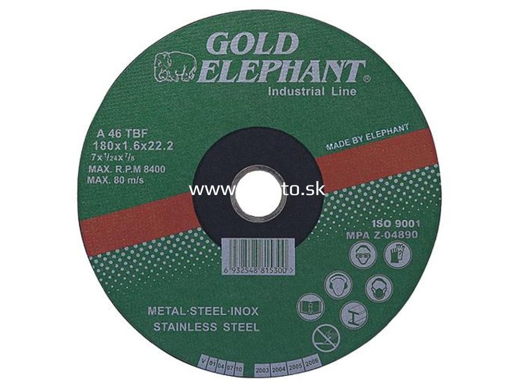 Kotúč Gold Elephant 41AA 150x1,6x22,2 mm, rezný na kov a nerez A46TBF + praktický pomocník k objednávke