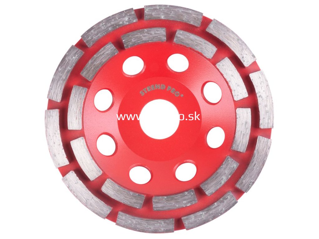 Tento vysokokvalitný dvojradový brúsny diamantový kotúč Strend Pro Premium je vhodný na mokré a suché opracovávanie. Určený je pre uhlové a podlahové brúsky. Jeho dlhá životnosť a vysoká kvalita je zabezpečená precíznym nánosom samotných diamantových segmentov.