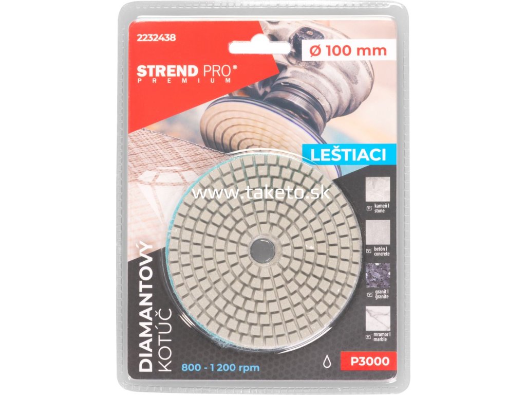 Kotúč Strend Pro Premium P3000, 100 mm, leštiaci, diamantový, suchý zips, za mokra leštenie brúsenie + praktický pomocník k objednávke
