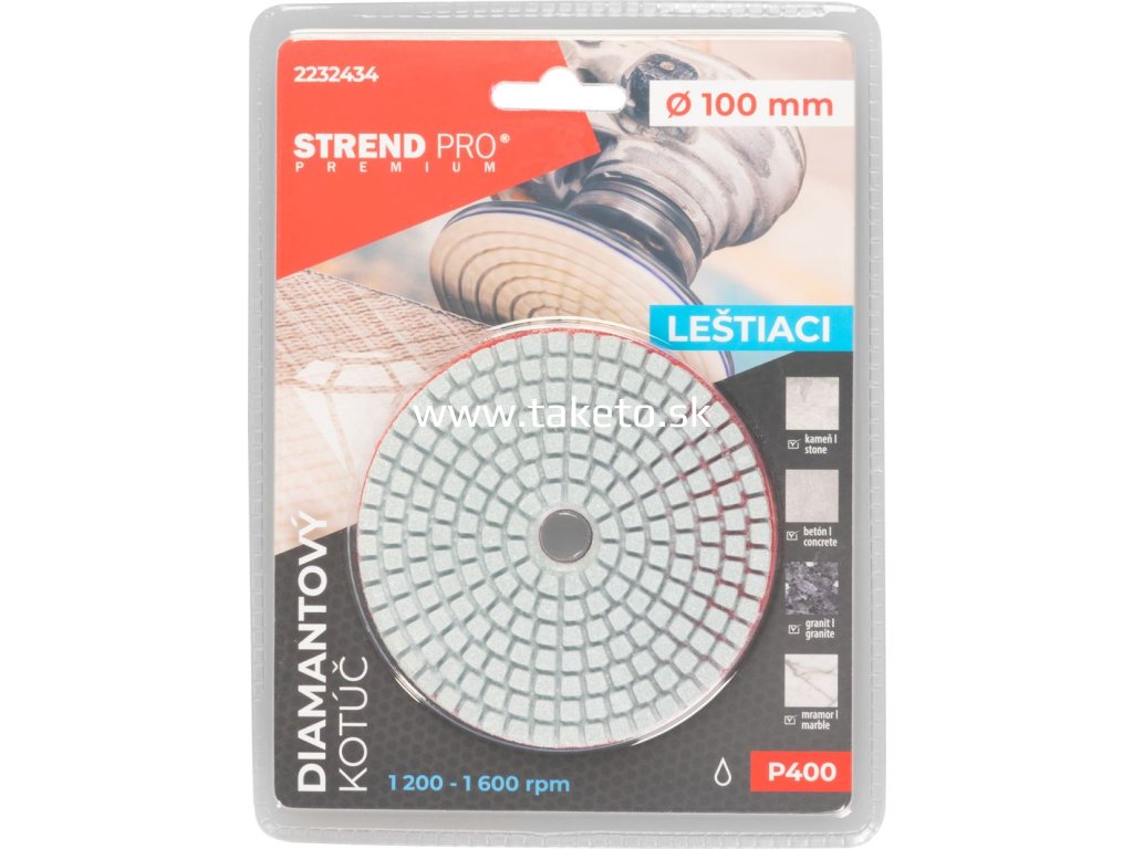 Kotúč Strend Pro Premium P400, 100 mm, leštiaci, diamantový, suchý zips, za mokra leštenie brúsenie + praktický pomocník k objednávke