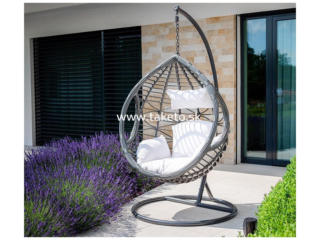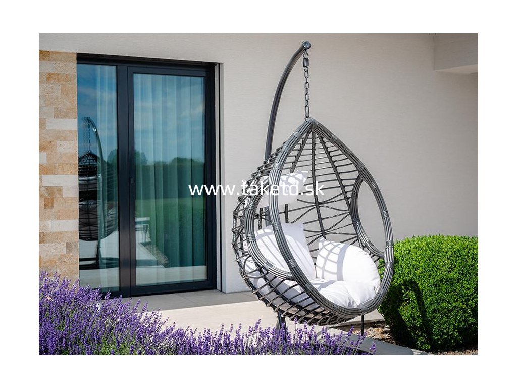 Ratanové hojdacie kreslo je krásnym a štýlovým doplnok do každej domácnosti. Kreslo je vďaka spodnej konštrukcii možné umiestniť do vnútorných, rovnako ako do vonkajších priestorov. Kreslo má okrúhly tvar. Stabilitu celej hojdačky zabezpečuje kovová konštrukcia šedej farby, spolu s polyratanovým sedacím priestorom. Vďaka hĺbke sedacieho priestoru vám hojdačka vytvára malý súkromný priestor. Nosnosť hojdačky je 150 kg. Rozmery samotného hojdacieho kresla, zaveseného na konštrukcii, sú 120 x 105 x 75 cm. Celková výška je 200 cm. Pre dokonalý pocit pohodlia a komfortu su súčasťou balenia bavlnené vankúše a poduška vo farbe ivory. Konštrukciu je potrebné umiestniť na rovný povrch.