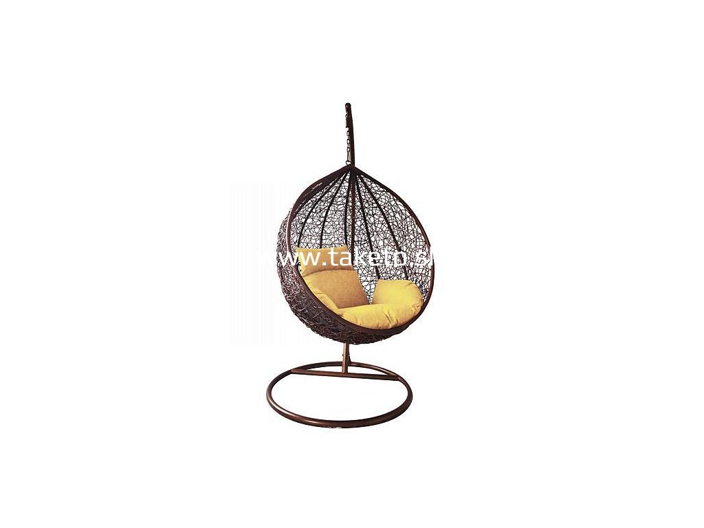 Ratanové hojdacie kreslo je krásnym a štýlovým doplnok do každej domácnosti. Kreslo je vďaka spodnej konštrukcii možné umiestniť do vnútorných, rovnako ako do vonkajších priestorov. Kreslo má okrúhly tvar. Stabilitu celej hojdačky zabezpečuje kovová konštrukcia hnedej farby, spolu s polyratanovým sedacím priestorom. Vďaka hĺbke sedacieho priestoru vám hojdačka vytvára malý súkromný priestor. Nosnosť hojdačky je 150 kg. Rozmery samotného hojdacieho kresla, zaveseného na konštrukcii, sú 120 x 105 x 75 cm. Celková výška je 200 cm. Pre dokonalý pocit pohodlia a komfortu su súčasťou balenia bavlnené vankúše a poduška vo farbe oker. Konštrukciu je potrebné umiestniť na rovný povrch.