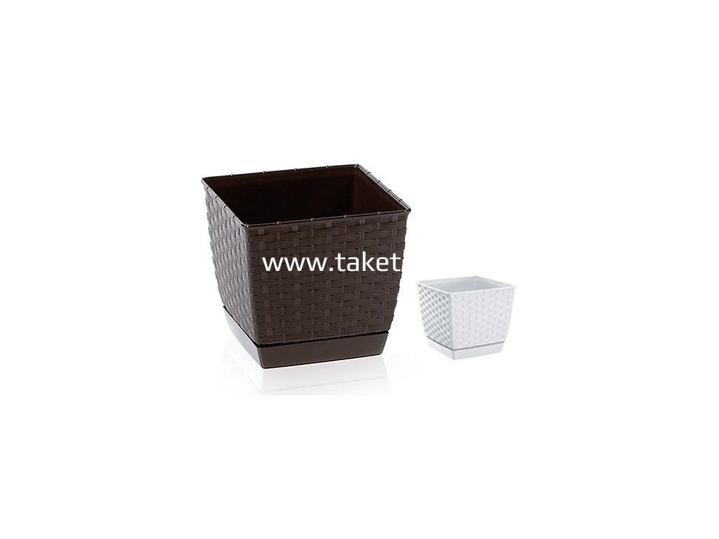 Kvetináč RATOLLA Square 250, tmavohnedý, podložka, štvorcový tvar, moderný prepletaný vzor