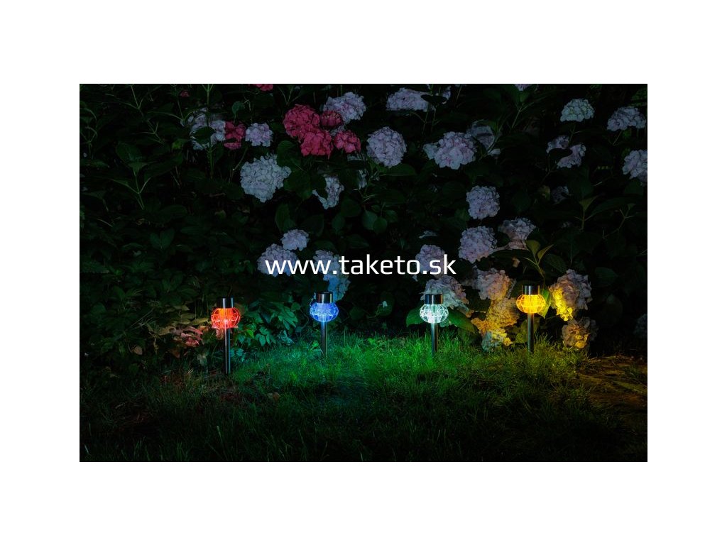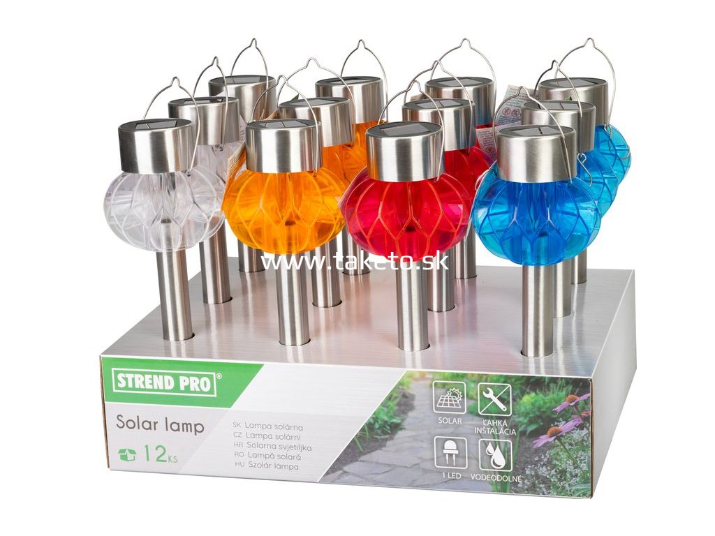 Štýlová záhradná solárna lampa je moderným doplnkom každej záhrady. Počas dňa solárny panel konvertuje slnečnú energiu na elektrickú energiu, ktorá sa ukladá do dobíjateľnej batérie. V noci sa svetlo automatický zapne a využíva uloženú energiu. Lampa tak prostredníctvom farebných LED diód svieti príjemným svetlom. Rozmery tejto plastovej lampy sú 9 x 36 cm.