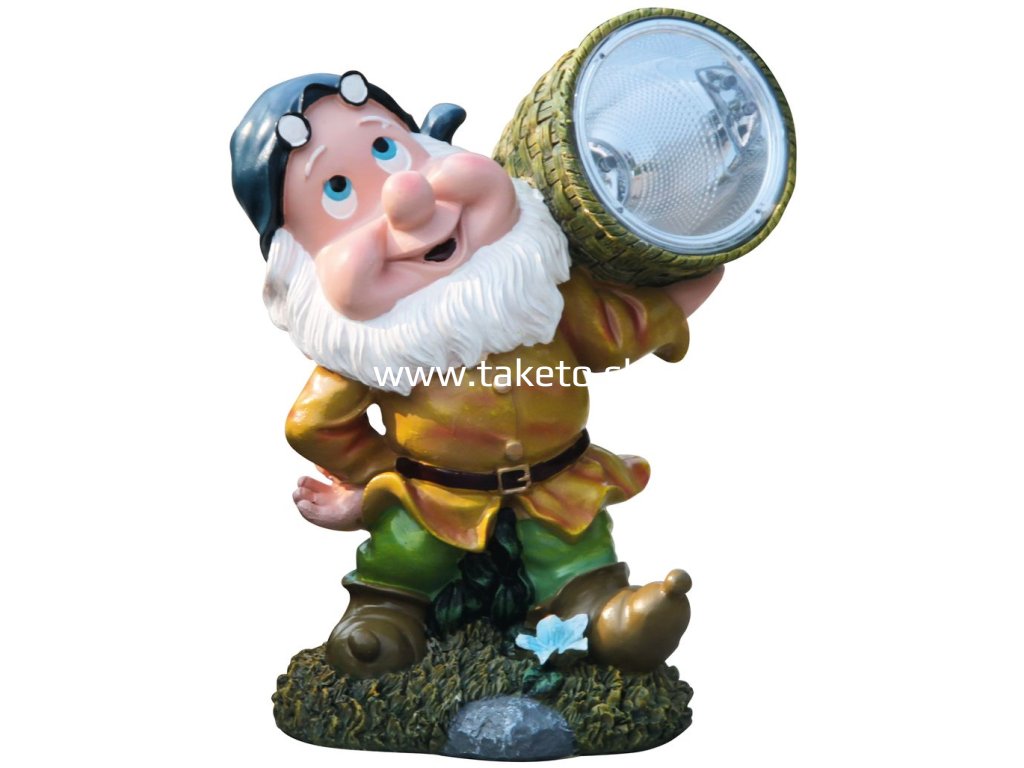Solárna lampa v tvare záhradného trpaslíka je výborným doplnkom každej záhrady. Lampa je vybavená 4 LED diódami, ktoré svietia studenou bielou farbou. Rozmery tejto záhradnej lampy sú 20 x 15 x 25 cm.