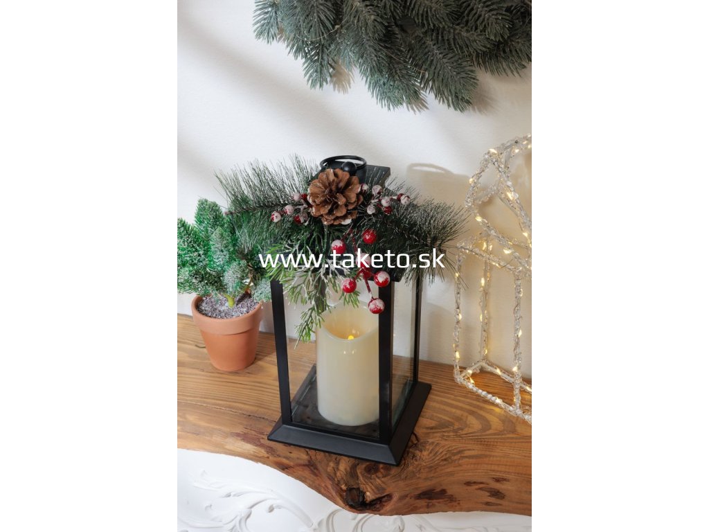 Vytvorte si čarovnú atmosféru počas Vianoc s týmto elegantným lampášom MagicHome Vianoce. Čierny plastový dizajn s detailom v podobe ozdoby z ihličia, bobúľ a šišky dodáva dekorácii autentický zimný vzhľad.