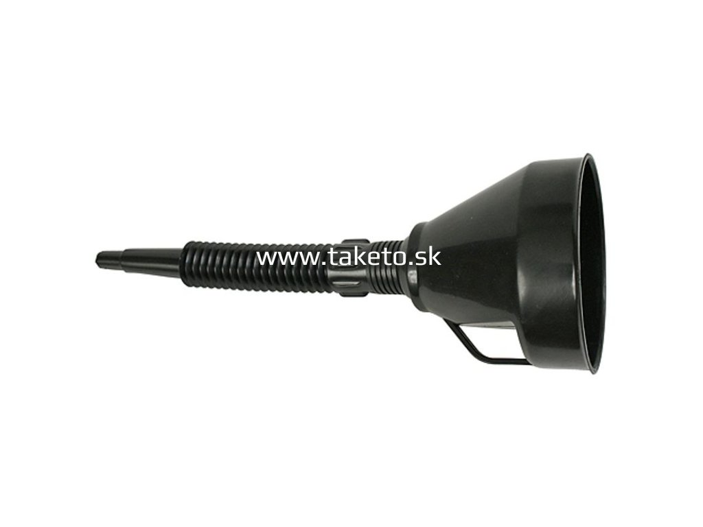 Na bezpečné preliatie pohonnej hmoty použite tento čierny platový lievik s filtrom s výškou 14 cm.