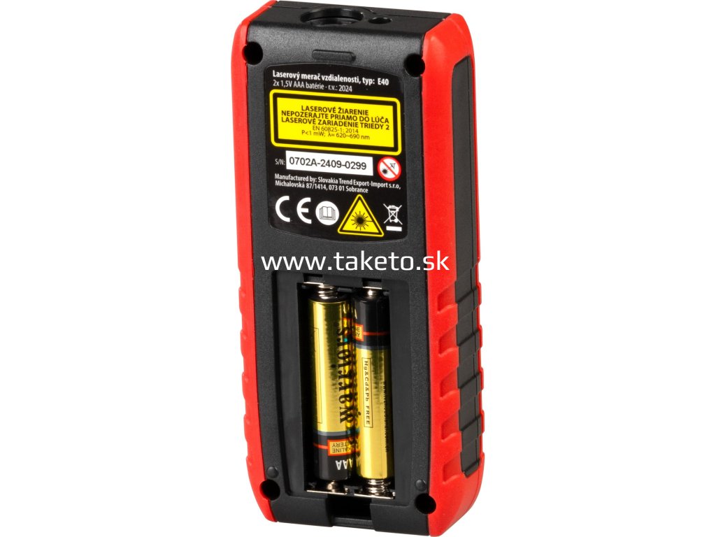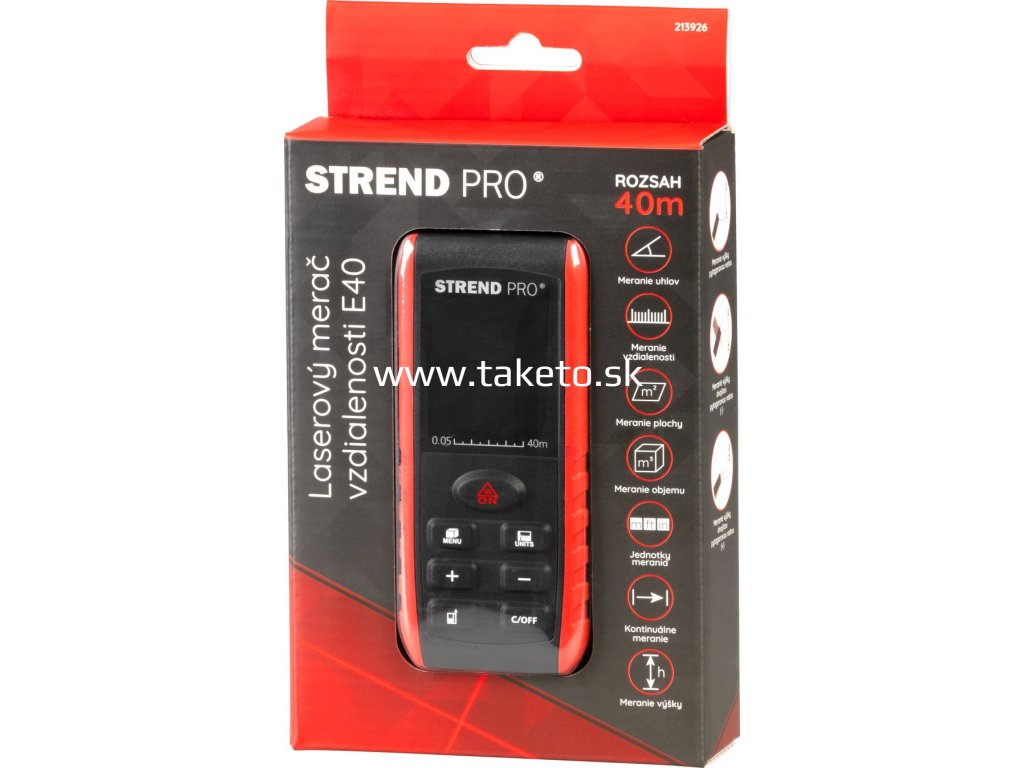 Merač vzdialenosti Strend Pro DIME 40M, laserový, EXTRA funkcia merač uhlov + praktický pomocník k objednávke