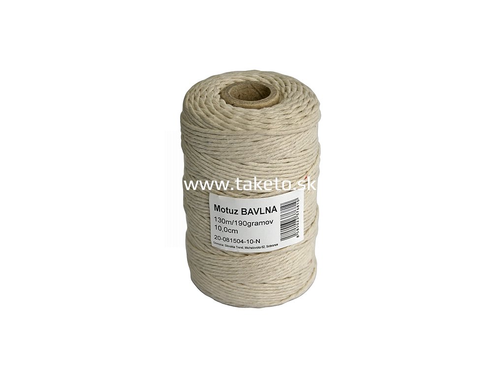 Motuz Cotton by nemal chýbať vo vašej domácnosti. Jeho dĺžka je 130 m a je vyrobený z bavlny. Je vhodný tiež na zdobenie a tvorenie prírodných dekorácii.