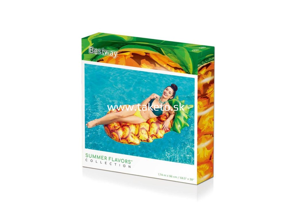 Realistická nafukovačka Bestway® 43310 v tvare ananásu sa postará o horúce dni plné zábavy na vode v bazéne, či jazere. Nafukovačka je vybavená 2 vzduchovými komorami, ktoré sa postarajú o vašu bezpečnosť.