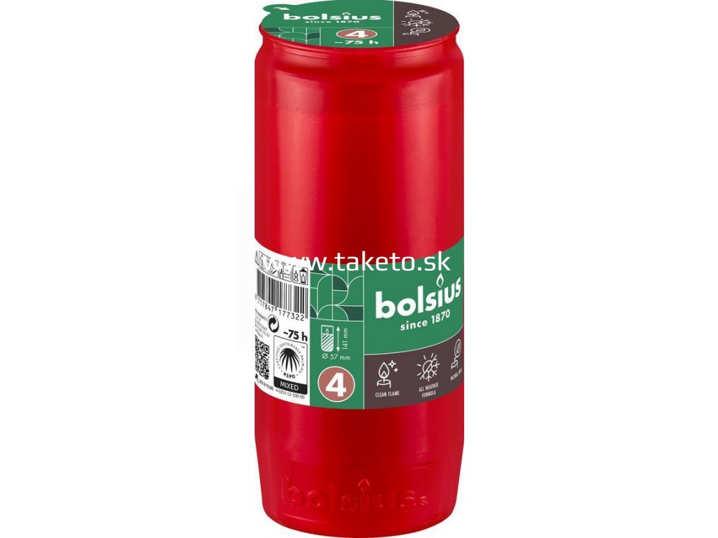 Olejová náplň Bolsius vyhorí až do konca, horí krásnym rovnomerným plameňom aj pri vysokej vlhkosti, veternom počasí alebo mraze. Nedymí, nefarbí a neničí lampáše. Doba horenia: 40 hodín. Farba: červená.