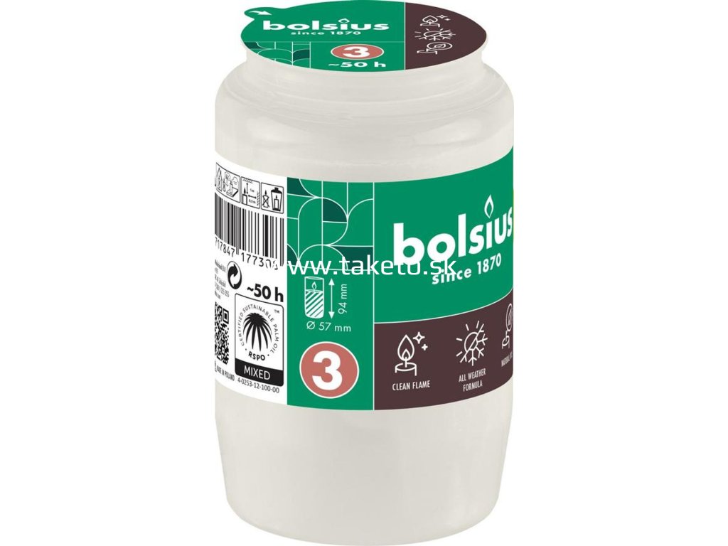Olejová náplň Bolsius vyhorí až do konca, horí krásnym rovnomerným plameňom aj pri vysokej vlhkosti, veternom počasí alebo mraze. Nedymí, nefarbí a neničí lampáše.