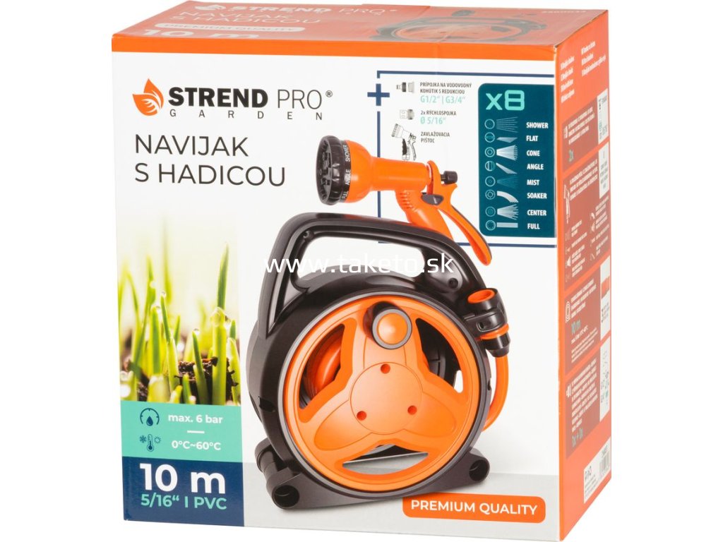 Navíjač Strend Pro Garden, so záhradnou hadicou, pištoľ, 10m, 5/16" + praktický pomocník k objednávke