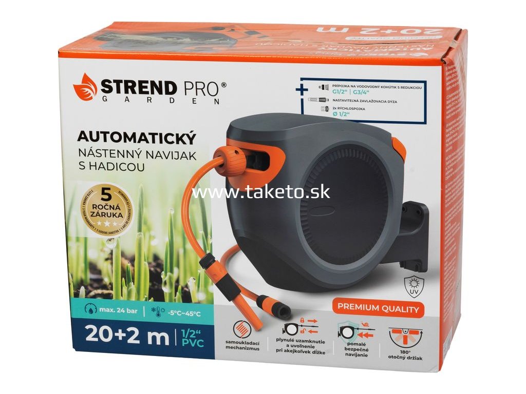 Navíjač Strend Pro Premium, na stenu, automatický 1/2", so záhradnou hadicou L-20+2 m + praktický pomocník k objednávke