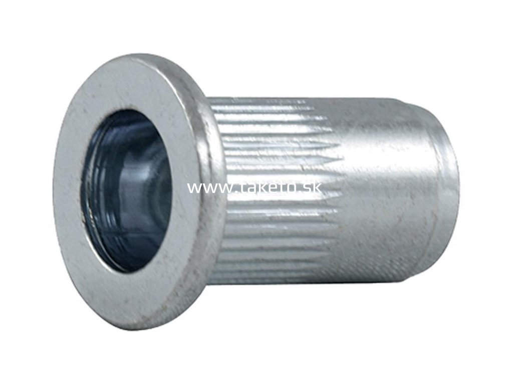 Maticový nit M5 s plochou hlavou vyrobený z uhlíkovej ocele. Určený je predovšetkým do tenkých materiálov kde treba vytvoriť závit pre spoj so skrutkou.